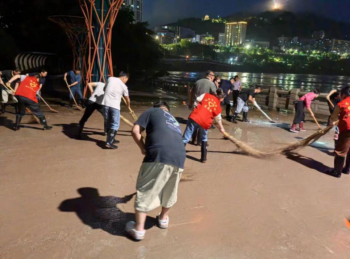 近日,受持續(xù)強降雨影響,達州洲河河水暴漲,汛情告急。7 月11日晚六時許,接市防汛抗旱指揮部開展清淤工作指令后,達州發(fā)展(控股)有限責任公司聞令而動、主動擔當作為,在公司黨總支書記童鑫的領(lǐng)隊下,全體職工身著“志愿服務(wù)隊”服裝迅速奔赴塔坨廣場濱河游園開展清淤工作。